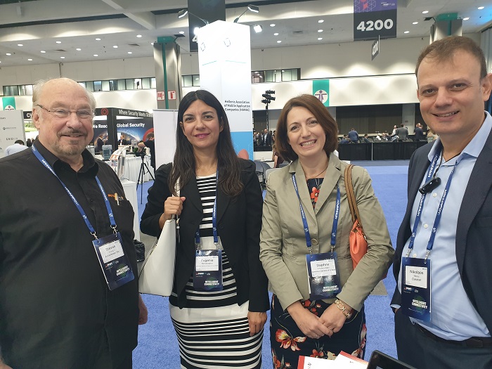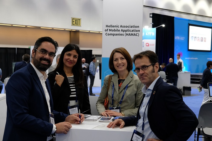Ο Γιώργος Μαρκατάτος, Αντιπρόεδρος ΣΕΚΕΕ, ανανέωσε την συμμετοχή στο MWCA 2020. Μαζί του οι κυρίες Δάφνη Βιτσικουνάκη, Γραμματέας ΟΕΥ Α, στο Ελληνικό Προξενείο στο San Francisco και Ευγενία Μπενιάτογλου, Γενική Πρόξενο της Ελλάδας στο Los Angeles, οι οποίες συνεισέφεραν στην προβολή και δικτύωση των ελληνικών καινοτομικών επιχειρήσεων που συμμετείχαν στην έκθεση. Μαζί τους ο Hugues Bardin, GSMA 4YFN Business Director Los Angeles Conventional Center entrance Steve Crough – Acromove, Νίκος Νίκου – Classter με τις κυρίες Δάφνη Βιτσικουνάκη, Γραμματέας ΟΕΥ Α, στο Ελληνικό Προξενείο στο San Francisco και Ευγενία Μπενιάτογλου, Γενική Πρόξενο της Ελλάδας στο Los AngelesΟ καθ. Στέλιος Θωμόπουλος παρουσίασε τις δραστηριότητες της Claret, spin-off του Ε.Κ.Ε.Φ.Ε. ΔΗΜΟΚΡΙΤΟΣ